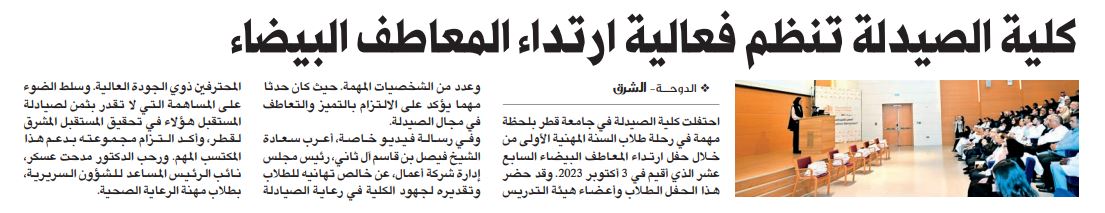 كلية الصيدلة تنظم فعالية ارتداء المعاطف البيضاء