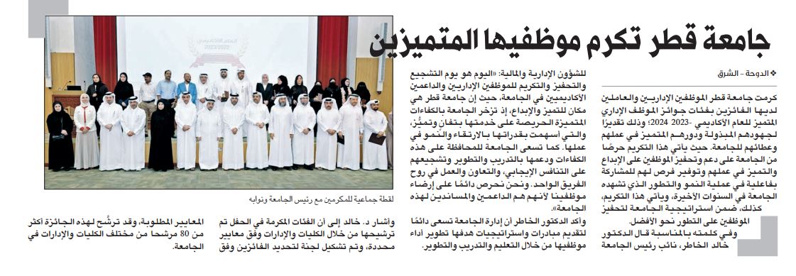 جامعة قطر تكرم موظفيها المتميزين