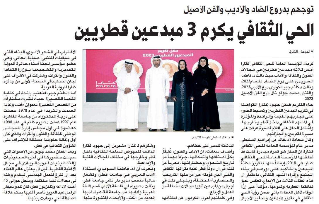 الحي الثقافي يكرم 3 مبدعين قطرين
