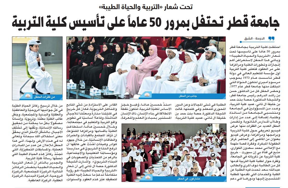 جامعة قطر تحتفل بمرور 50 عاماً على تأسيس كلية التربية