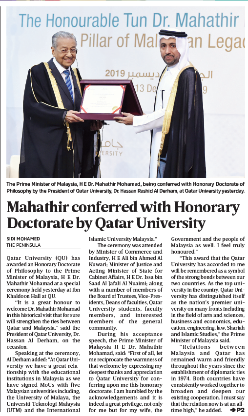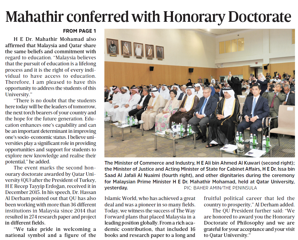 Mahathir conferred with Honorary Doctorate by Qatar University