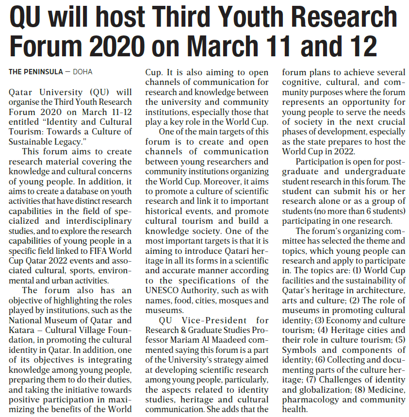 QU will host Third Youth Research Forum 2020 on March 11 and 12