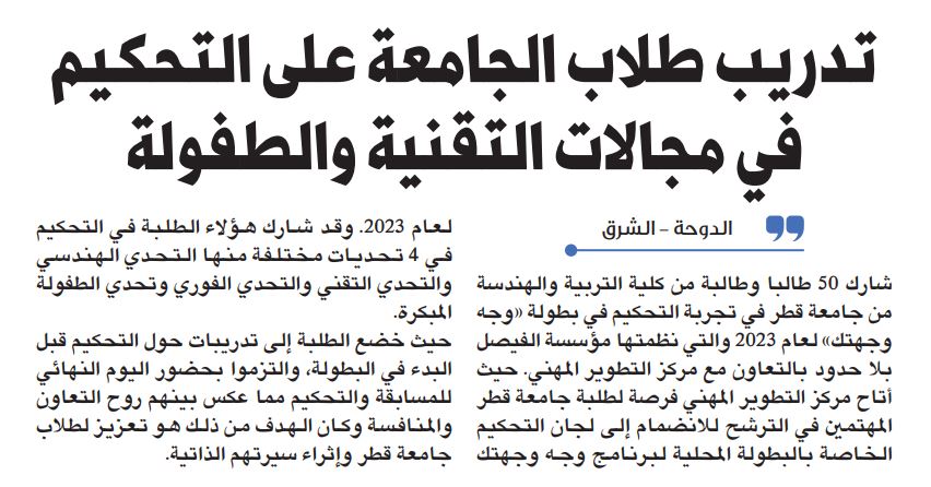 تدريب طلاب الجامعة على التحكيم في مجالات التقنية والطفولة