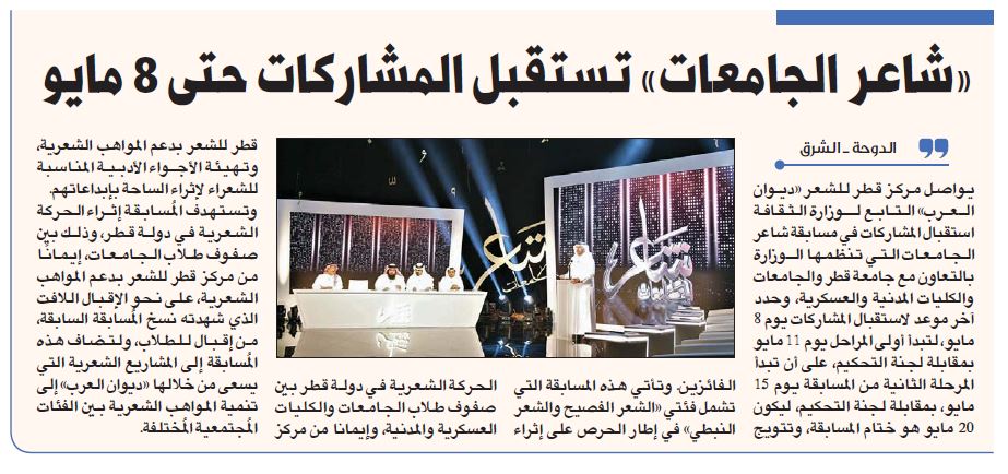 شاعر الجامعات" تستقبل المشاركات حتى 8 مايو"
