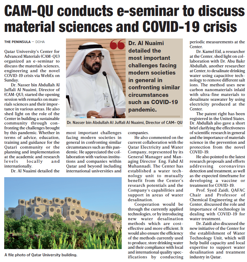CAM-QU conducts e-seminar to discuss material sciences and COVID-19 crisis
