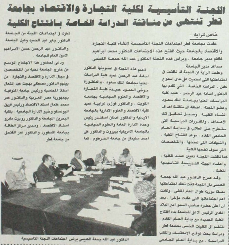 اللجنة التأسيسية لكلية التجارة و الاقتصاد بجامعة قطر تنتهى من مناقشة الدراسة الخاصة بافتتاح الكلية