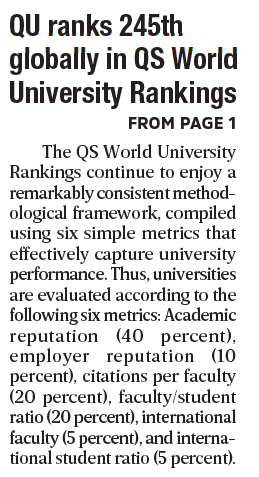 Qatar University ranks 245th globally in QS World University Rankings 2021