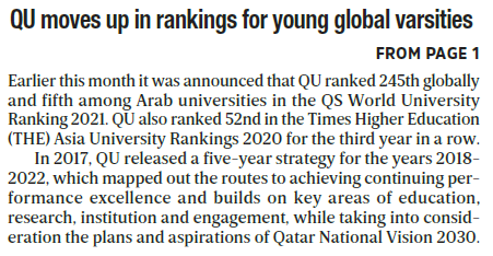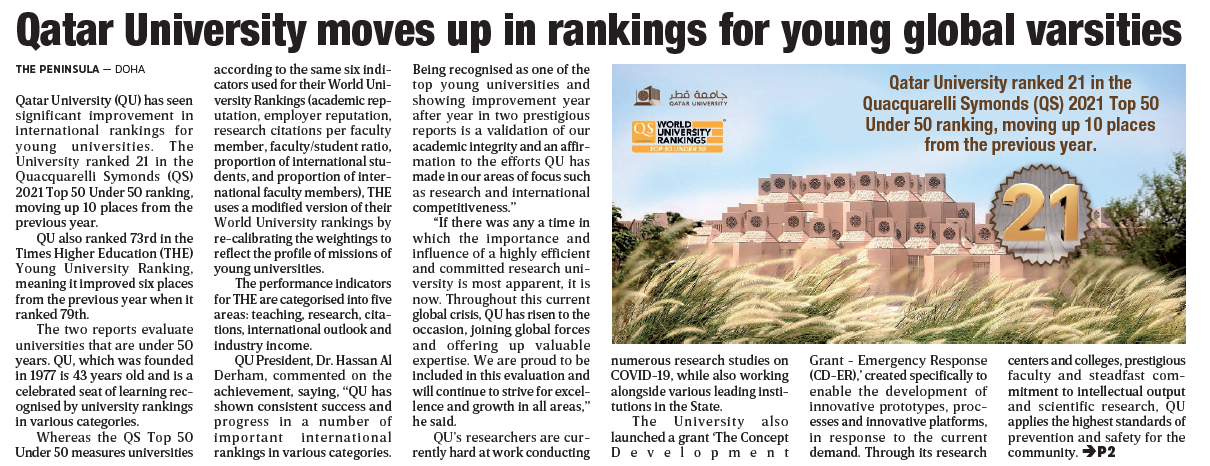 Qatar University moves up in rankings for young global varsities
