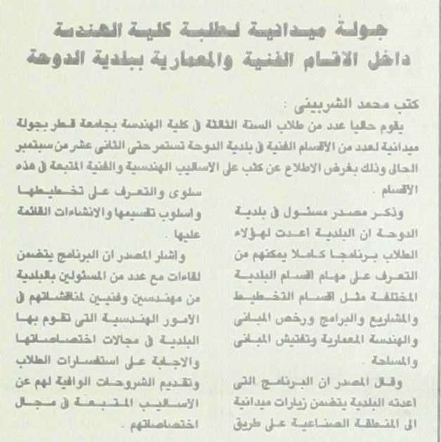 جولة ميدانية لطلبة كلية الهندسة داخل الاقسام الفنية و المعمارية ببلدية الدوحة