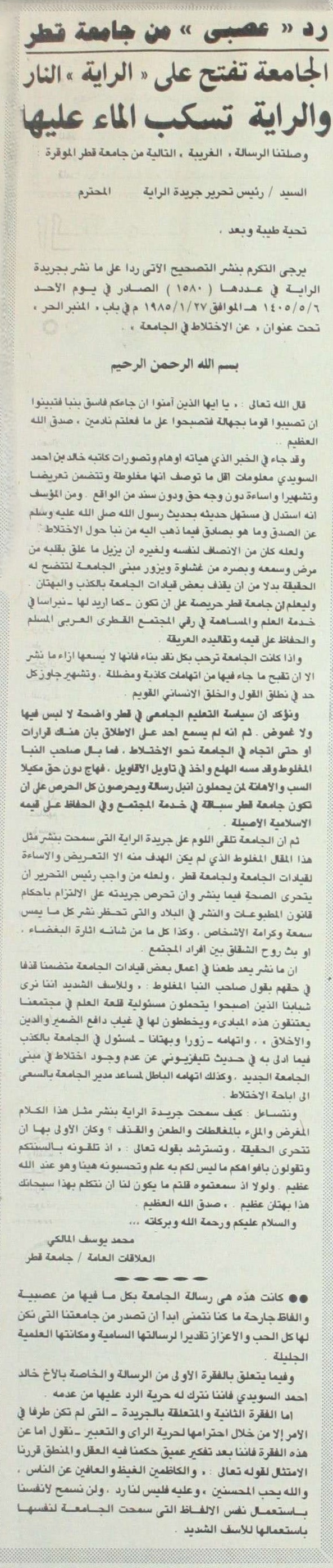 الجامعة تفتح علي" الراية " النار و الراية تسكب الماء عليها