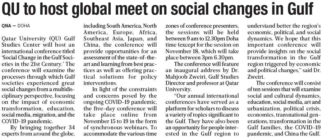 QU to host global meet on social changes in Gulf