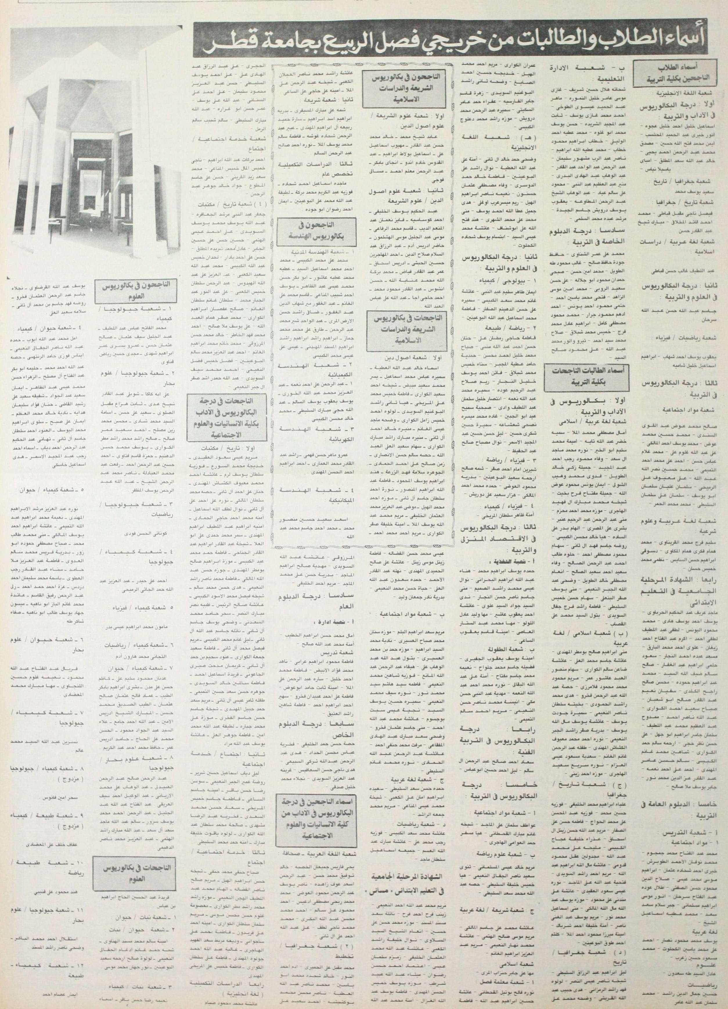 أسماء الطلاب والطالبات من خريجي فصل الربيع بجامعة قطر