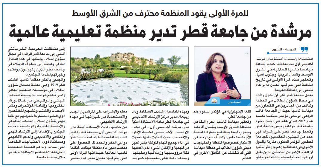 مرشدة من جامعة قطر تدير منظمة تعليمية عالمية