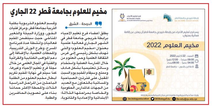 مخيم للعلوم بجامعة قطر 22 الجاري