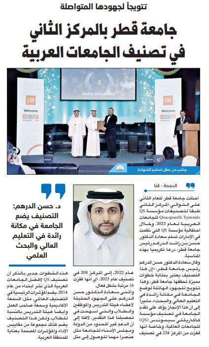 جامعة قطر بالمركز الثاني في تصنيف الجامعات العربية
