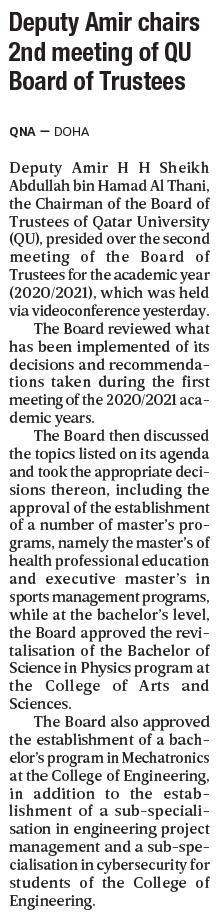 Deputy Amir chairs 2nd meeting of QU Board of Trustees