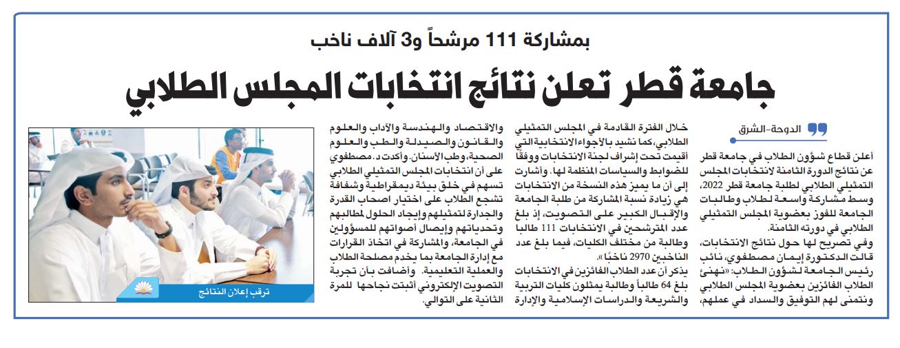 جامعة قطر تعلن نتائج انتخابات المجلس الطلابي