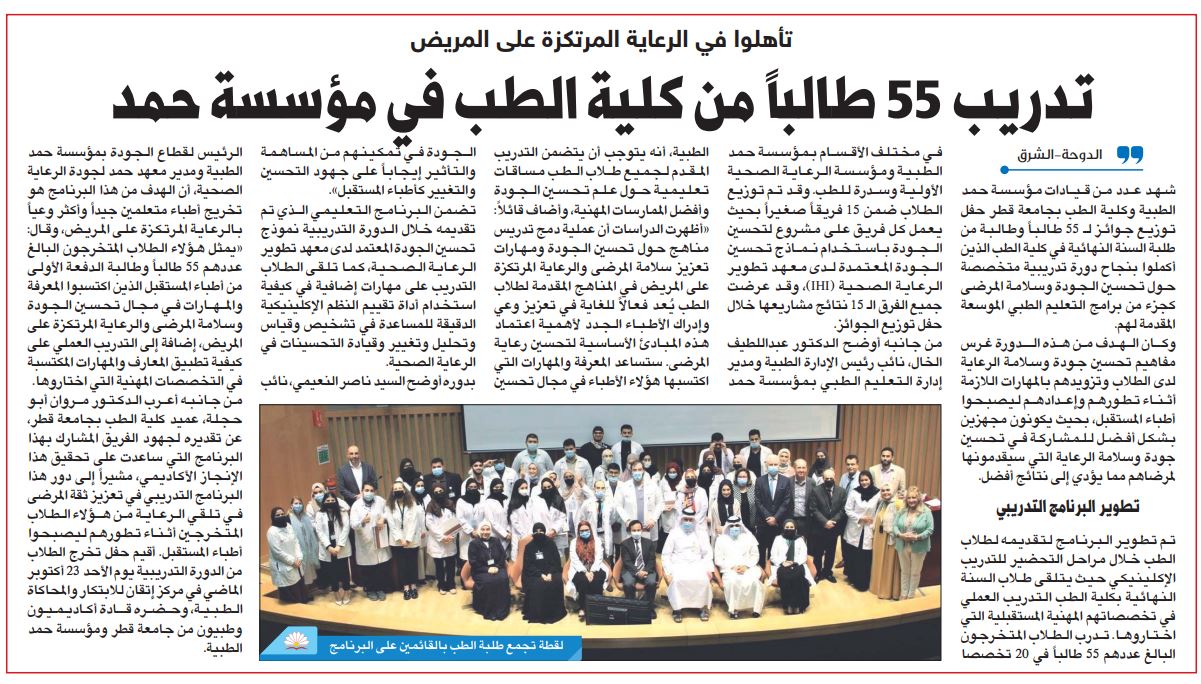 تدريب 55 طالباً من كلية الطب في مؤسسة حمد