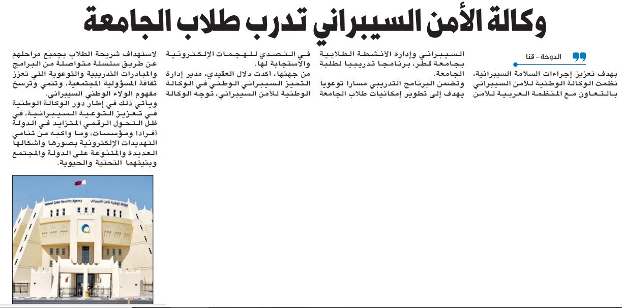 وكالة الأمن السيبراني تدرب طلاب الجامعة