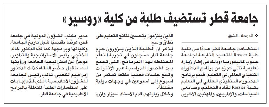 "جامعة قطر تستضيف طلبة من كلية "روسير