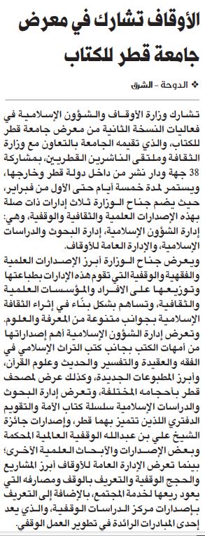 الأوقاف تشارك في معرض جامعة قطر للكتاب