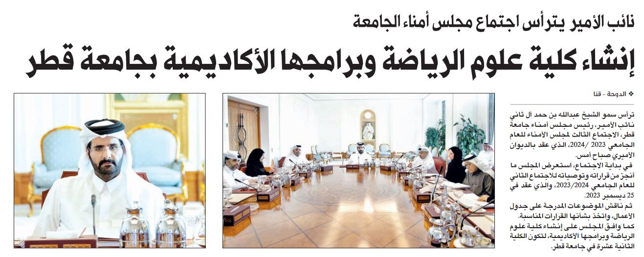 إنشاء كلية علوم الرياضة وبرامجها الأكاديمية بجامعة قطر