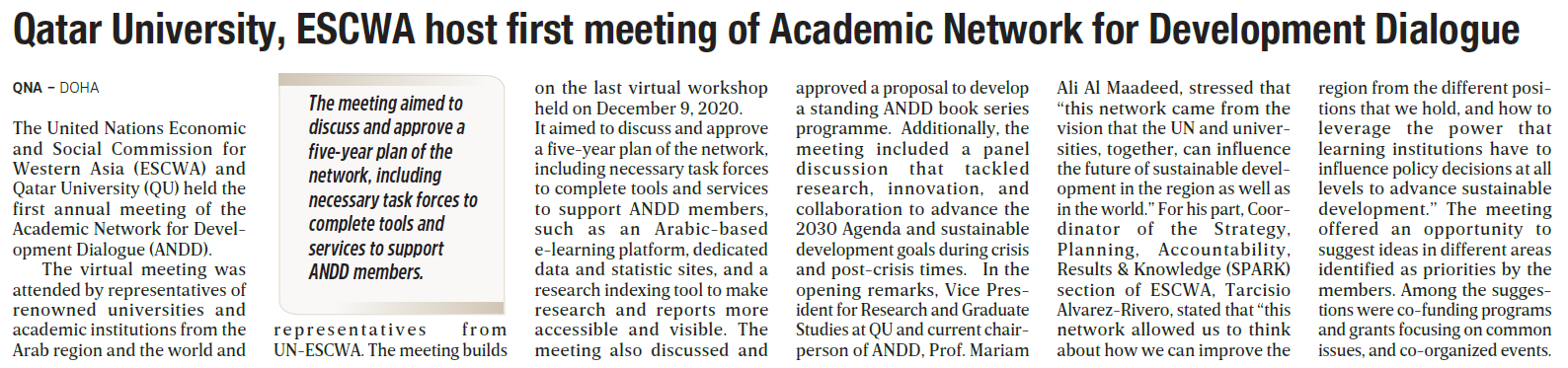 Qatar University, ESCWA host first meeting of Academic Network for Development Dialogue