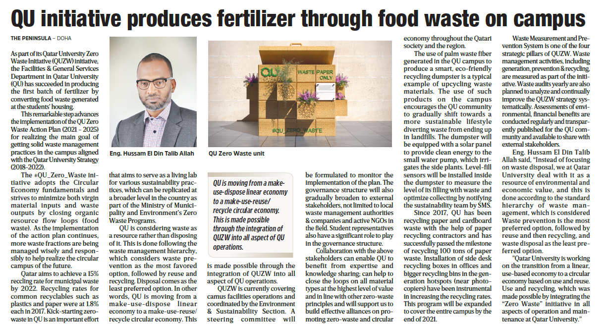 QU initiative produces fertilizer through food waste on campus