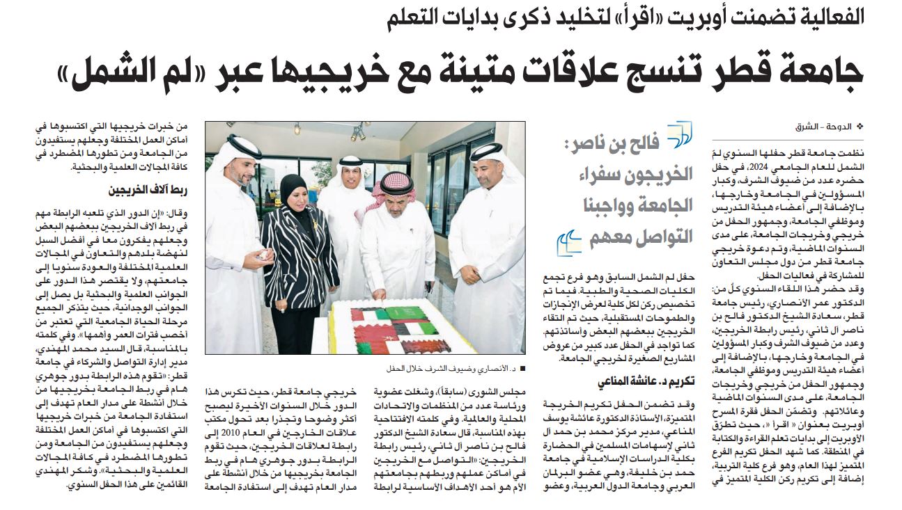 "جامعة قطر تنسج علاقات متينة مع خريجيها عبر "لم الشمل