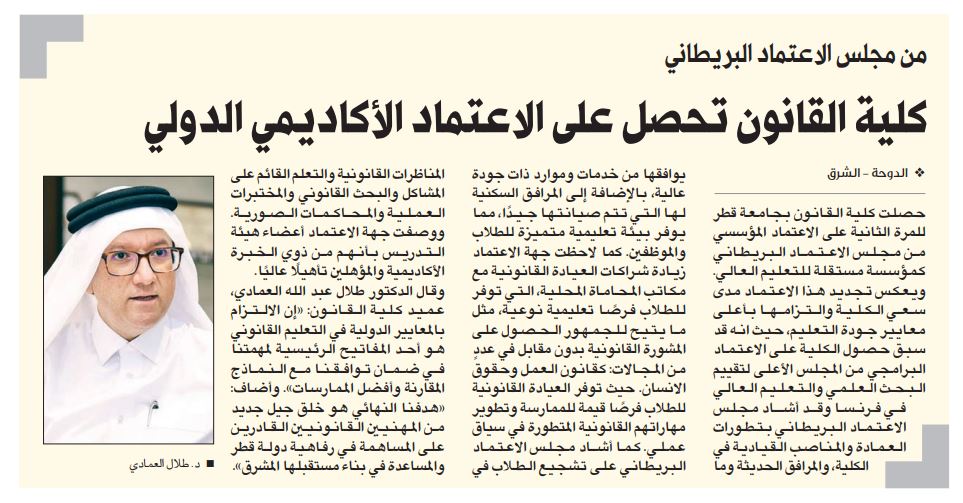 كلية القانون تحصل على الاعتماد الأكاديمي الدولي