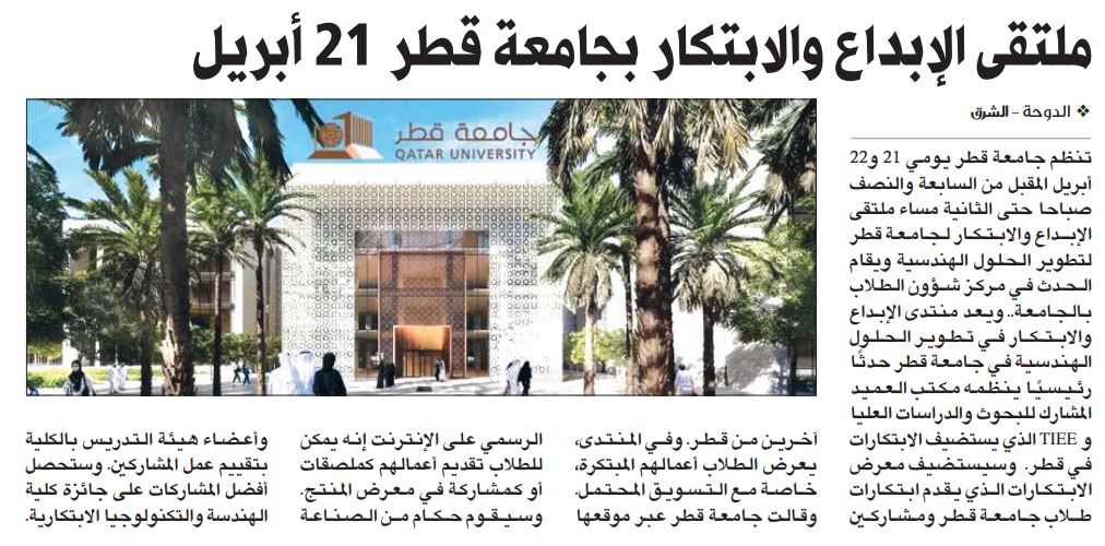 ملتقى الإبداع والابتكار بجامعة قطر 21 أبريل