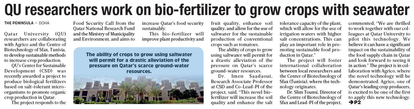 QU researchers work on bio-fertilizer to grow crops with seawater