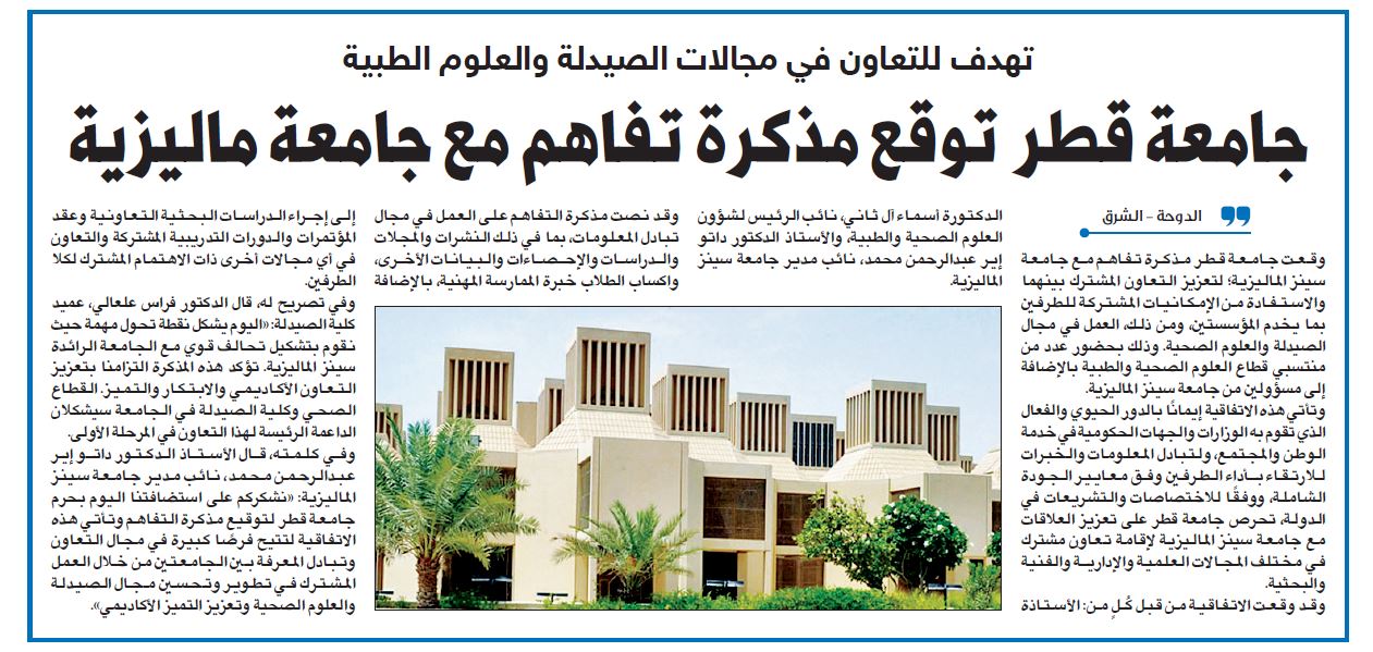 جامعة قطر توقع مذكرة تفاهم مع جامعة ماليزية