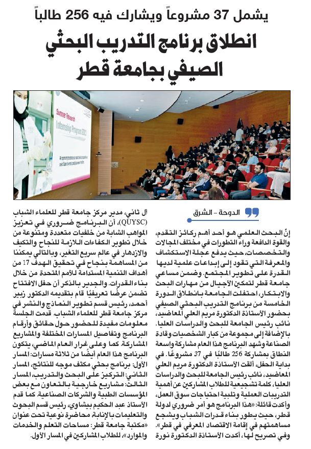 انطلاق برنامج التدريب البحثي الصيفي بجامعة قطر