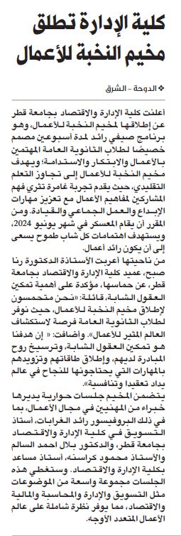 كلية الإدارة تطلق مخيم النخبة للأعمال