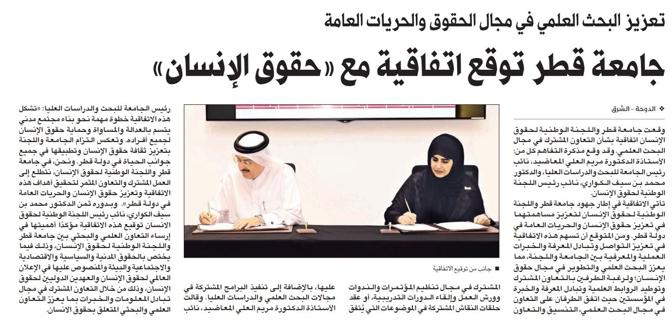 "جامعة قطر توقع اتفاقية مع "حقوق الإنسان