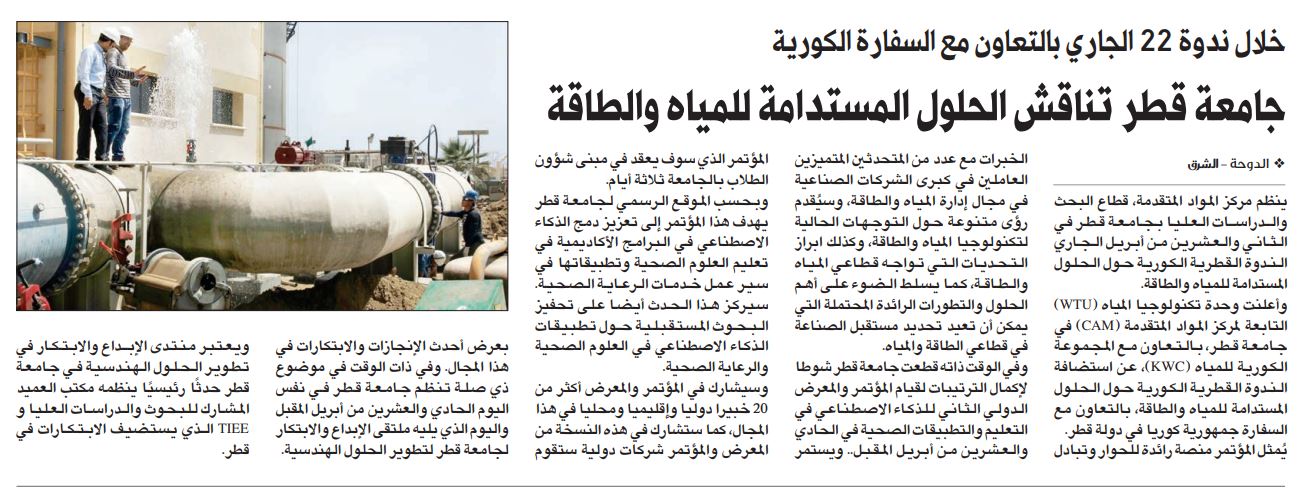 جامعة قطر تناقش الحلول المستدامة للمياه والطاقة