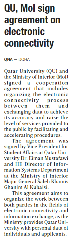 QU, MoI sign agreement on electronic connectivity