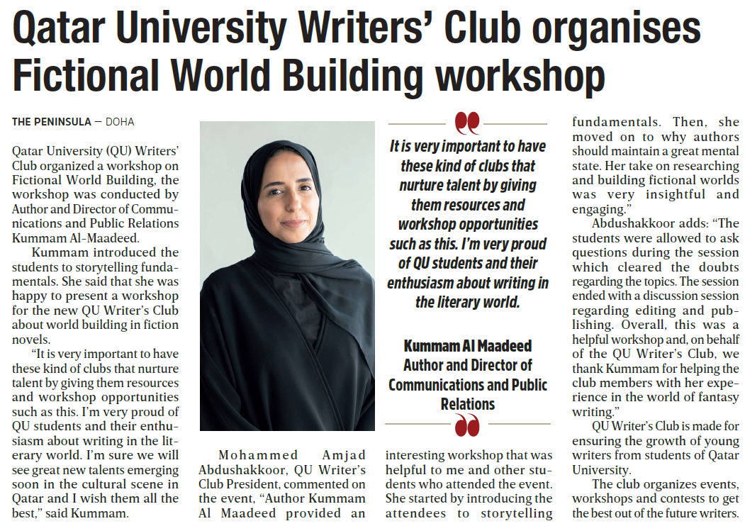 Qatar University Writers’ Club organises Fictional World Building workshop