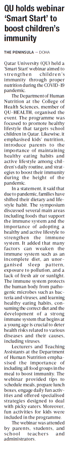 QU holds webinar ‘Smart Start’ to boost children’s immunity