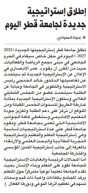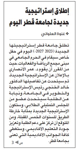 إطلاق إستراتيجية جديدة لجامعة قطر اليوم