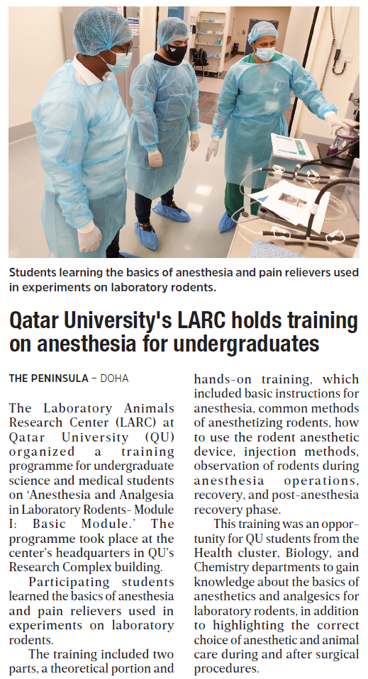 Qatar University's LARC holds training on anesthesia for undergraduates