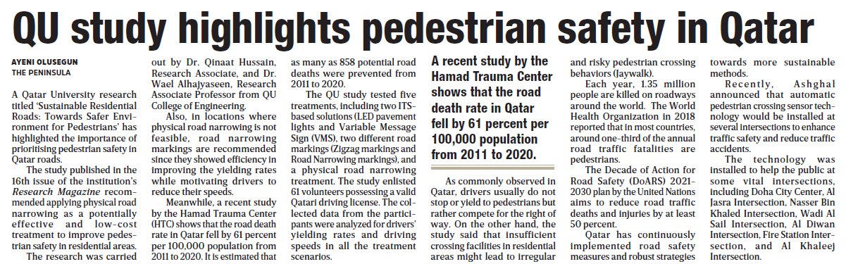 QU study highlights pedestrian safety in Qatar