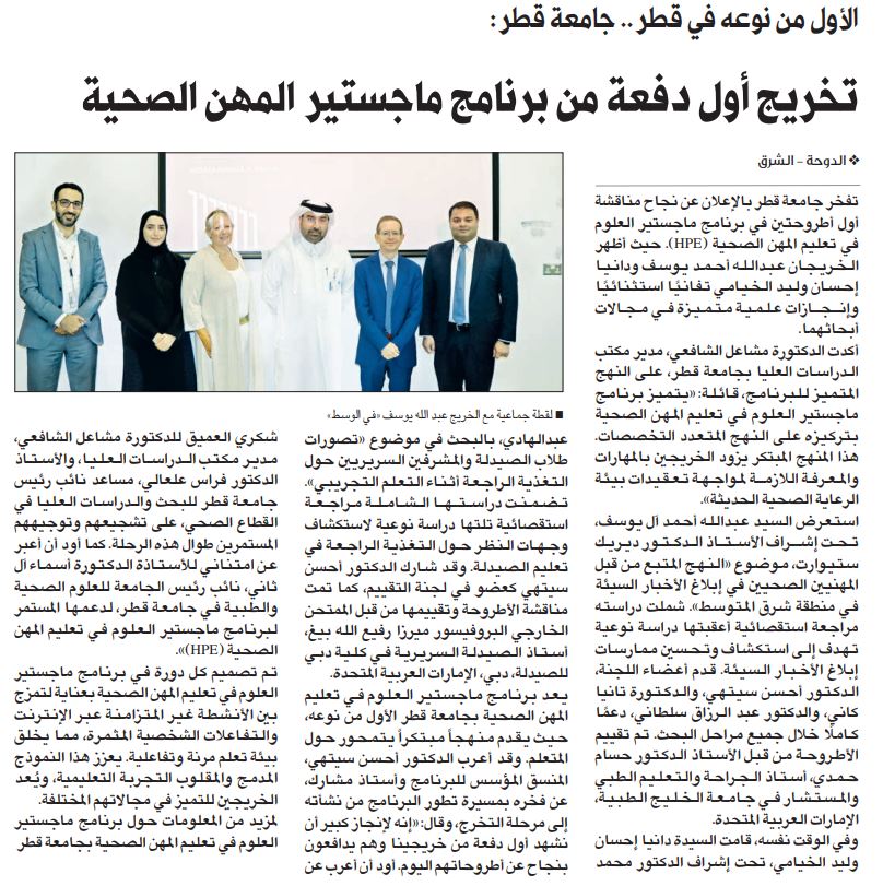 الأول من نوعه في قطر.. جامعة قطر: تخريج أول دفعة من برنامج ماجستير المهن الصحية