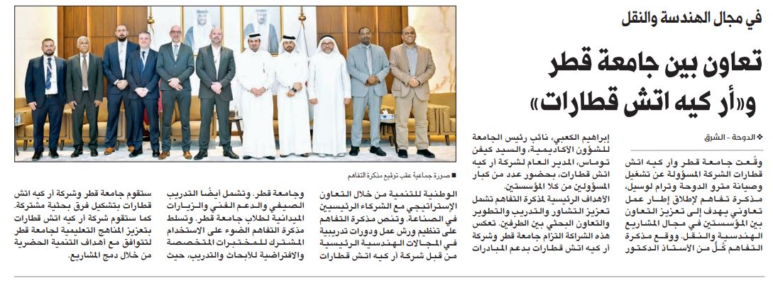 "تعاون بين جامعة قطر و"أر كيه اتش قطارات