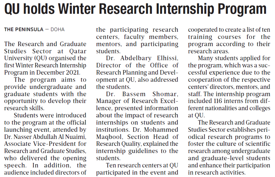 Qatar University Digital Hub is a digital collection operated and maintained by the Qatar University Library and supported by the ITS department