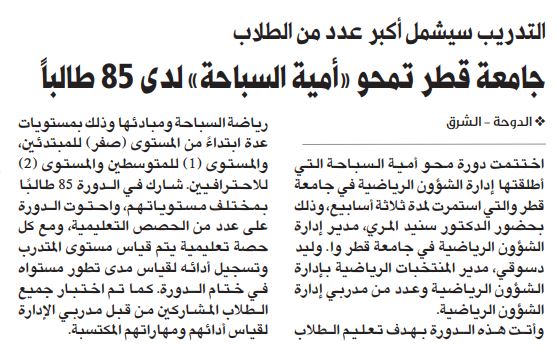 جامعة قطر تمحو"أمية السباحة" لدى 85 طالباً