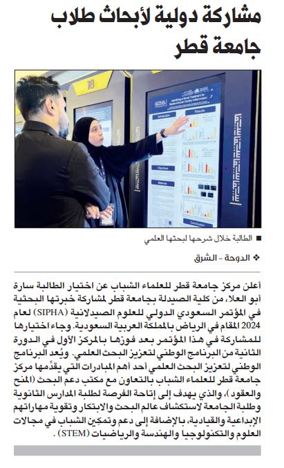 مشاركة دولية لأبحاث طلاب جامعة قطر