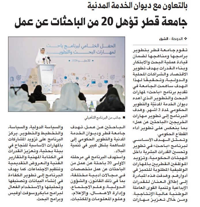 جامعة قطر تؤهل 20 من الباحثات عن عمل