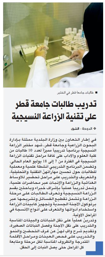 تدريب طالبات جامعة قطر على تقنية الزراعة النسيجية